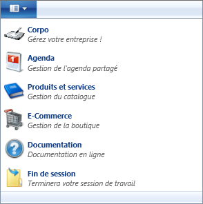 echo "L'application Corpo se divise en modules. Pour passer d'un module à l'autre, l'utilisateur une fois connecter doit cliquer sur le bouton en haut à gauche pour choisir le module auquel il souhaite accéder.