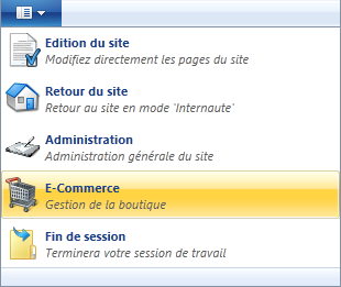 | Vous avez un site qui peut vendre des articles alors venez ici pour les administrer.  | | \/ ![]() Vous voici maintenant dans la catalogue. Ici vous pourrez voir tous vos articles qui sont en ligne ou pas encore. Pour en rajouter un, cliquez sur Ajouter un élément. Cette fenêtre s'ouvrira et vous pourrez rajouter un élément. Vous pouvez aussi décider de le rajouter maintenant et le faire apparaitre dans 2 semaines par exemple. Pour cela vous devenez indiquer la date de début que vous voulez et celle de fin. |